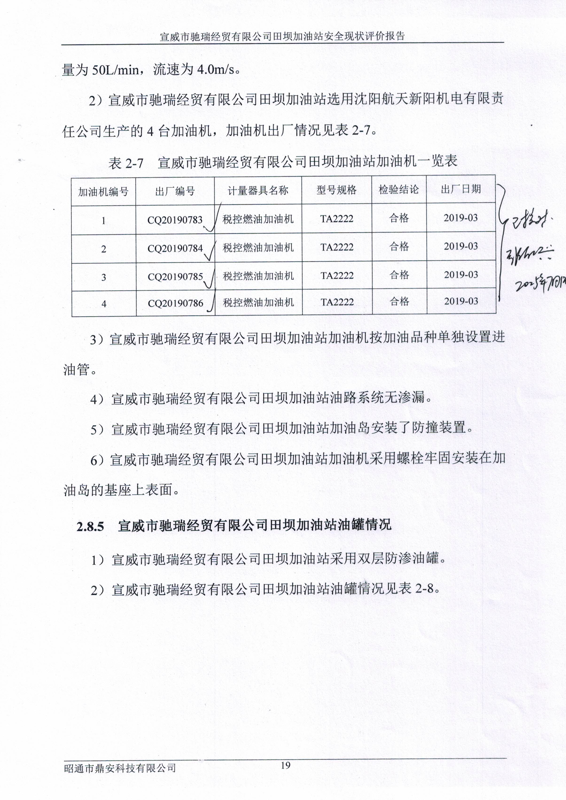 項目名稱 | 宣威市馳瑞經貿有限公司田壩加油站安全現狀評價報告 | 合同編號 | DAAPQJ2025-11 | |||||