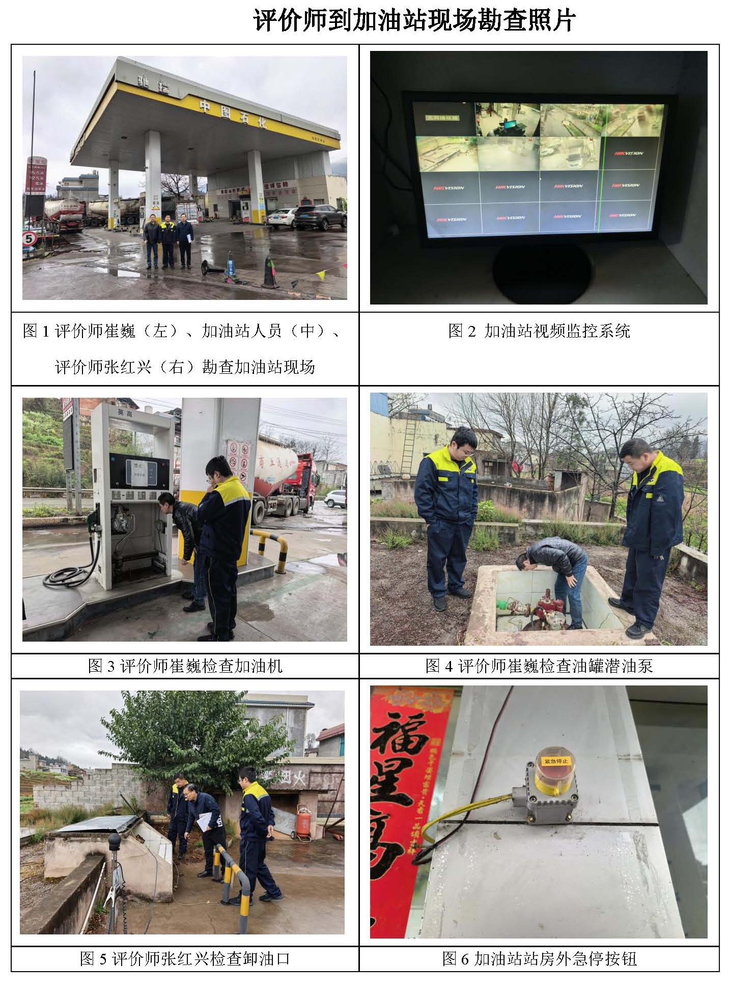 現場勘查情況 | 拍加油站及周邊平面照片,查看加油站周邊環境,查看加油區、油罐區、液位計、配電室現場情況,查看安全管理資料。 | |||||||